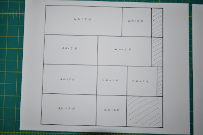 Make yourself a little cutting map of this diagram for easy reference. The cross-hatch sections indicate portions unused in the pattern - set those aside.